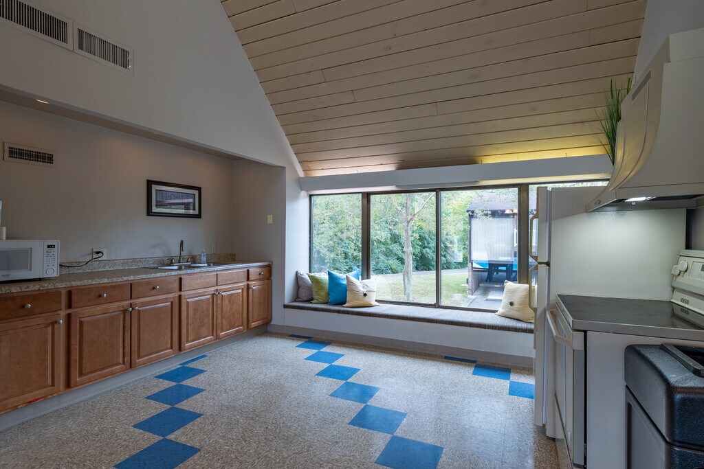 - Cathedral ceiling in select units