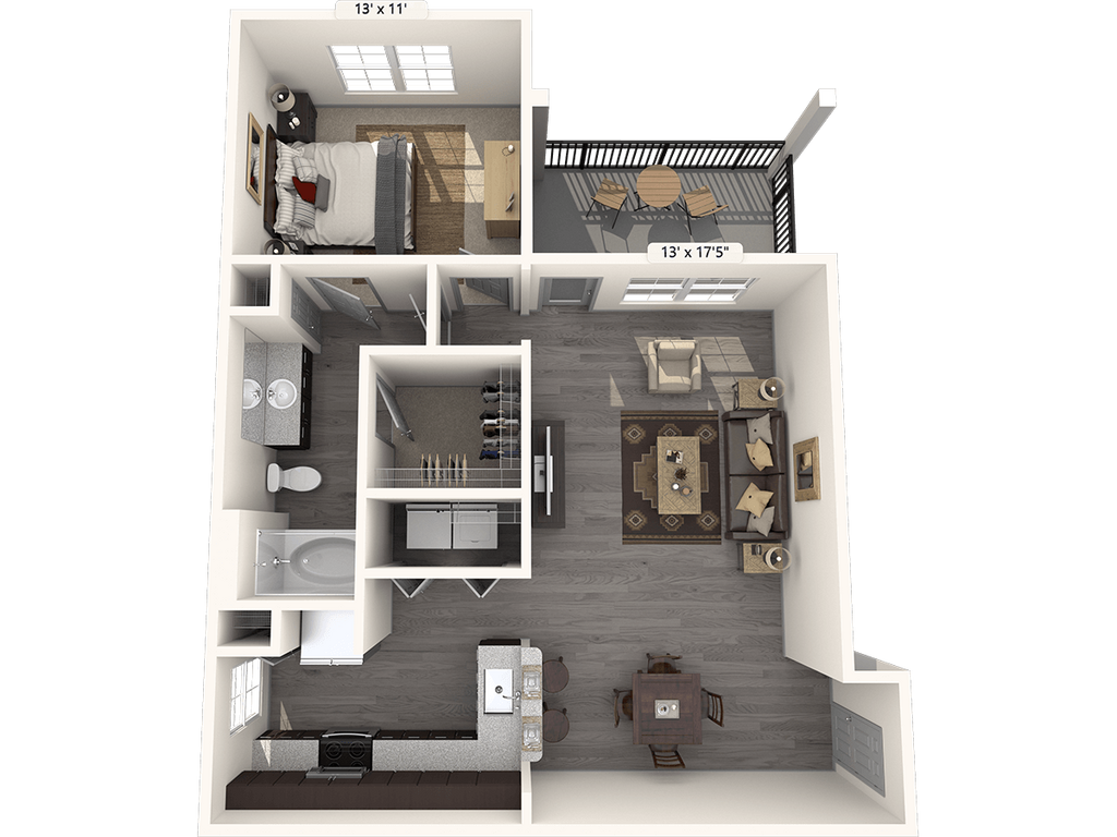 Apartment Model: A1X-1x1From $1,1271 Bedroom, 1 Bath, 795 sq ftAvailable NowFloor plans are artist's rendering. All dimensions are approximate. Actual product and specifications may vary in dimension or detail. Not all features are available in every rental home. Prices and availability are subject to change. Base rent is based on monthly frequency. Additional fees may apply, such as but not limited to package delivery, trash, water, amenities, etc. Deposits vary. Please see a representative for details.