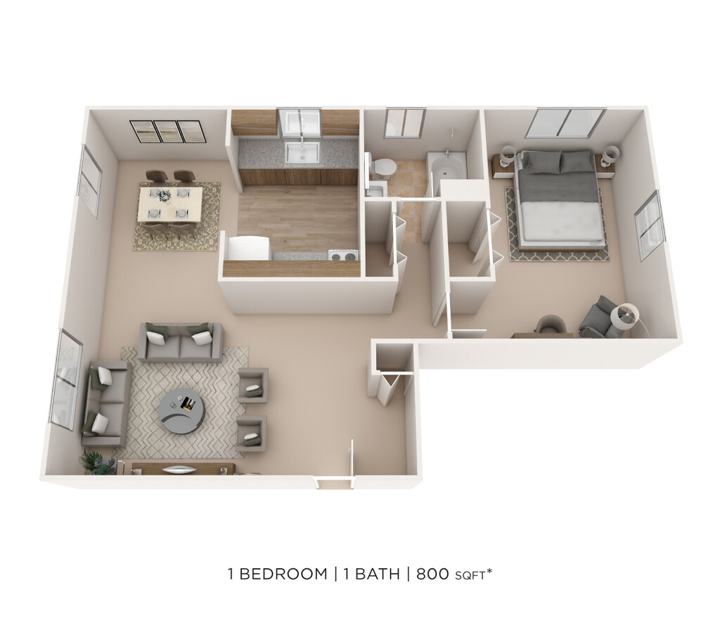 1 Bed, 1 Bath, 800 sq ftAvailable NowModel Gallery