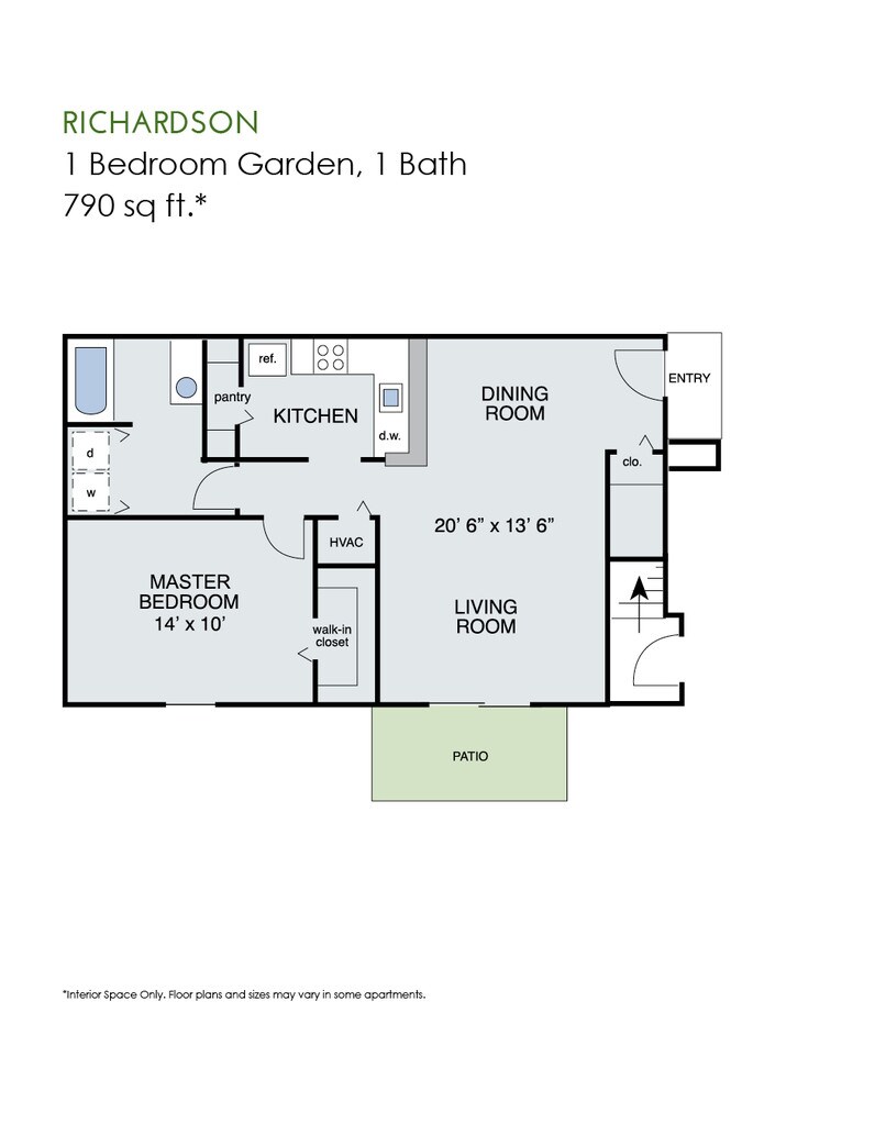Apartment Model: The Richardson GardenFrom $1,2621 Bedroom, 1 Bath, 799 sq ftAvailable Now![]()