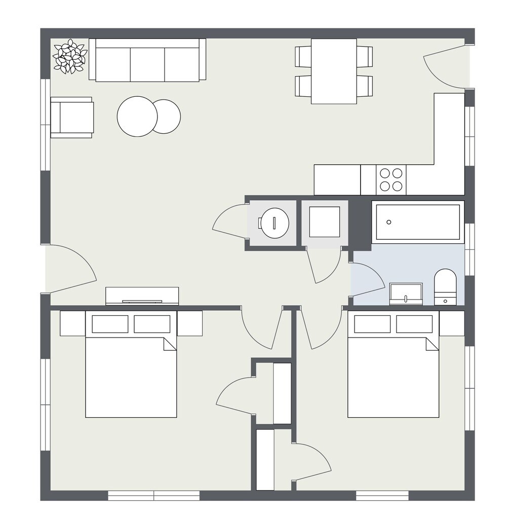 2 Bedroom, 1 Bathroom - Floorplan 11 ![]()