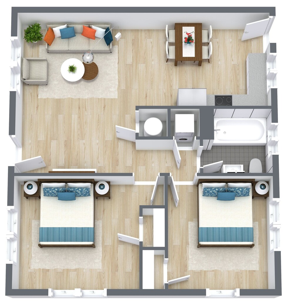 2 Beds, 1 Bath, 845 sq ftAvailable NowModel Gallery