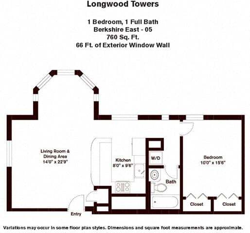 Apartment Model: Berkshire - 1 Bed/1 Bath1 Bedroom, 1 Bath, 760-790 sq ftAvailable May 4, 2026Floor plans are artist's rendering. All dimensions are approximate. Actual product and specifications may vary in dimension or detail. Not all features are available in every rental home. Please see a representative for details.