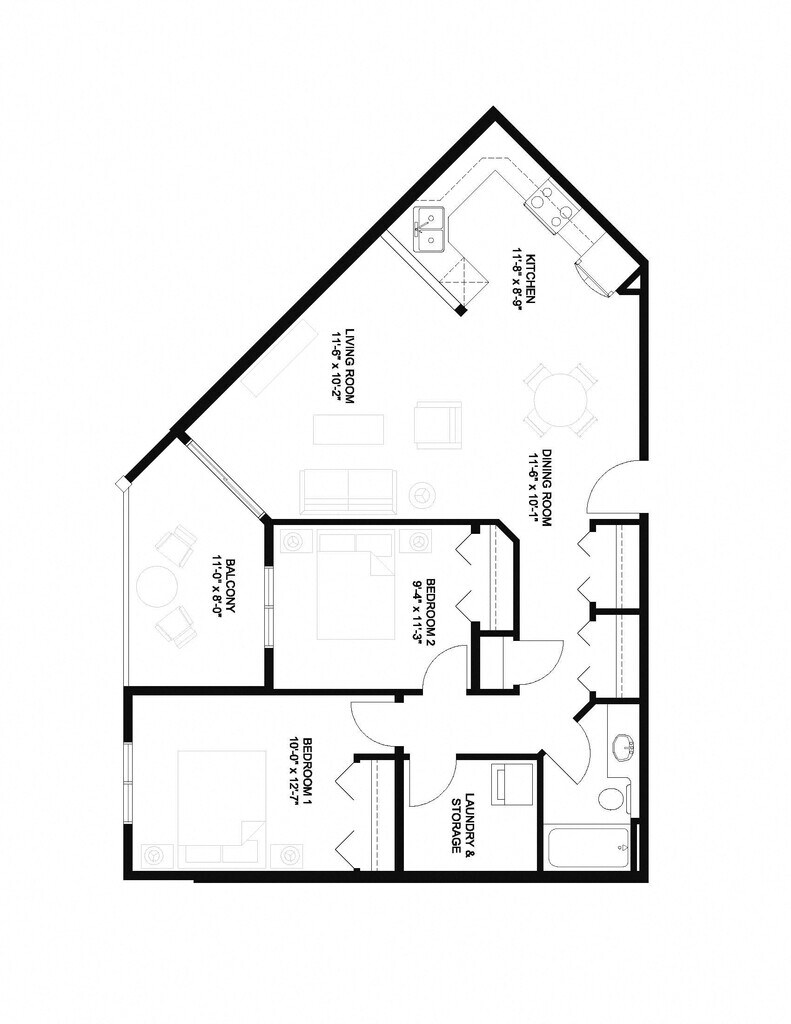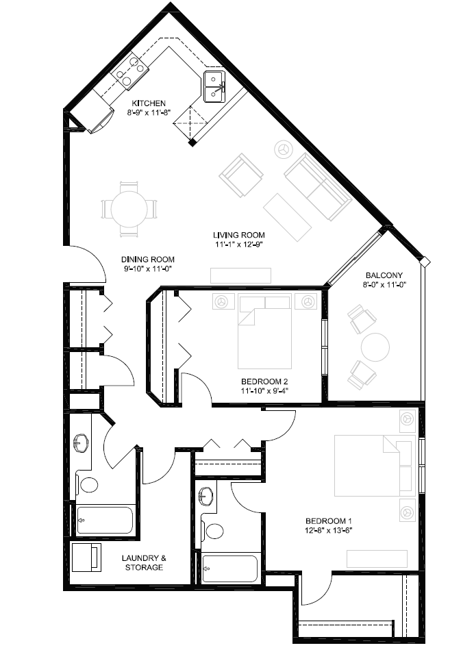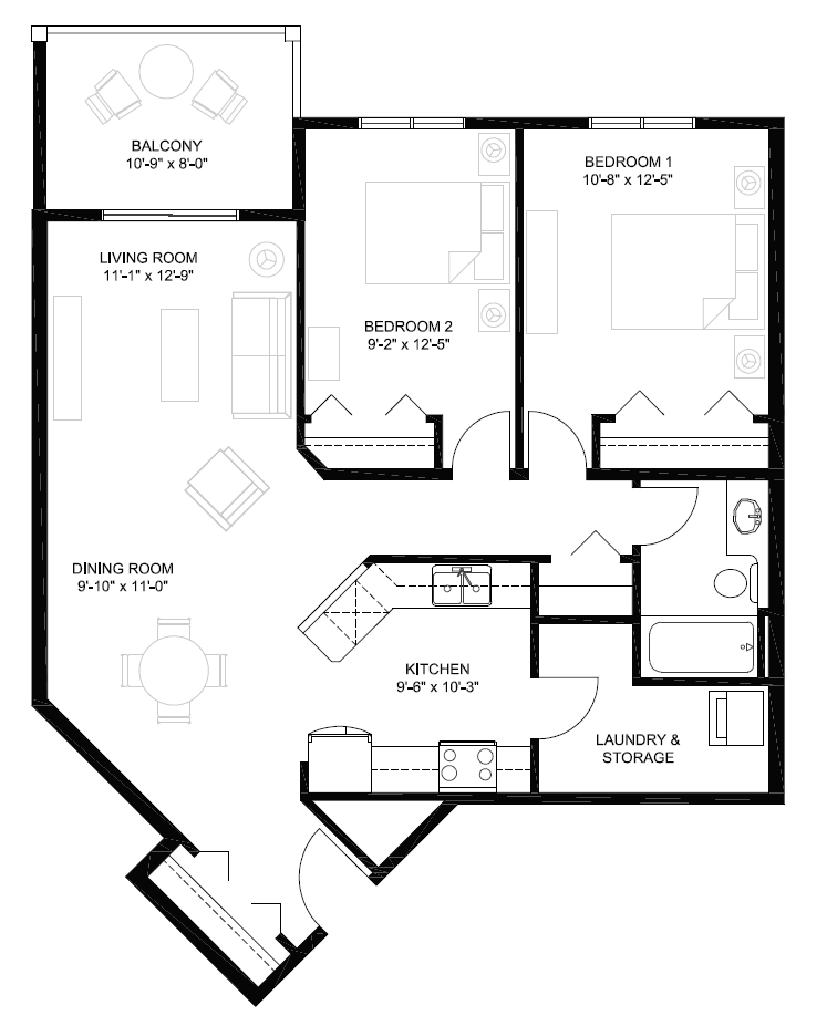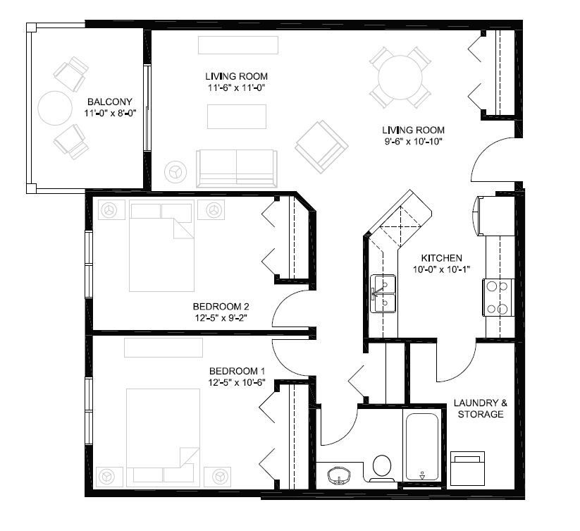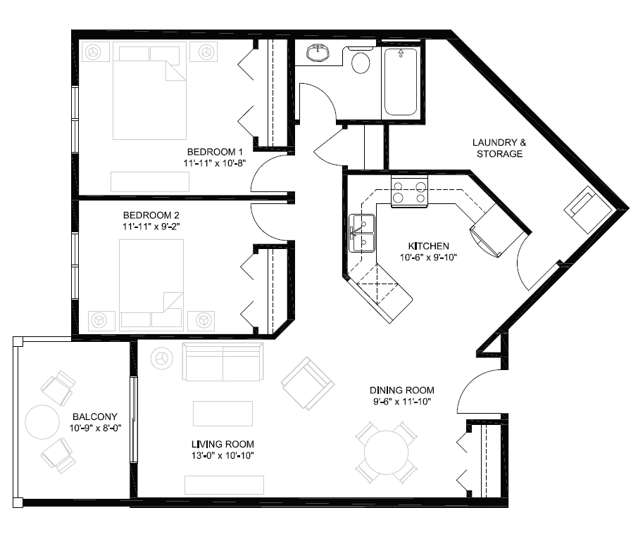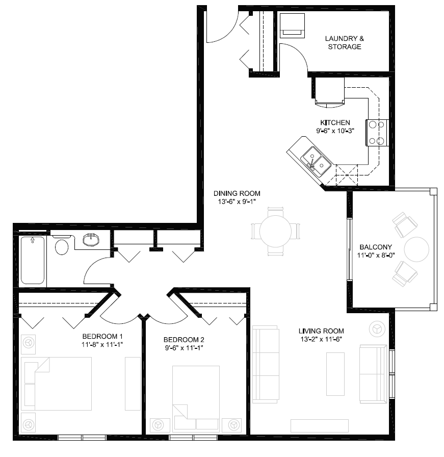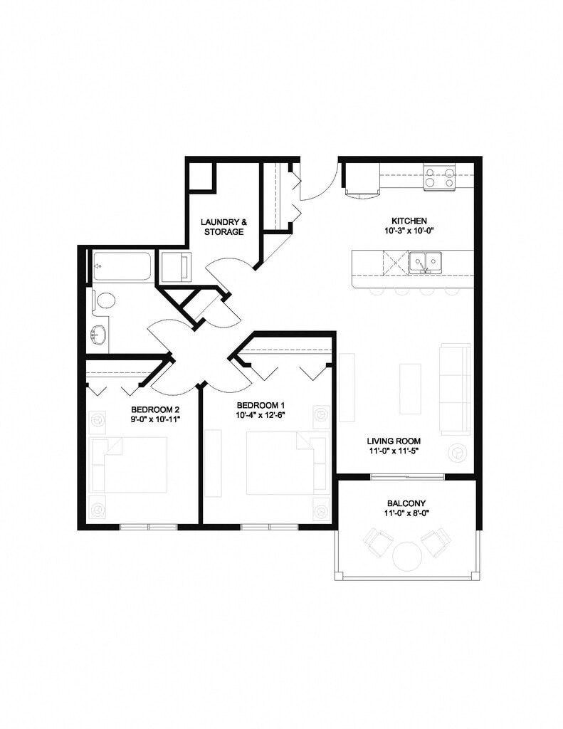 1B1B (Layout A) - Floorplan 10 2 Bedrooms