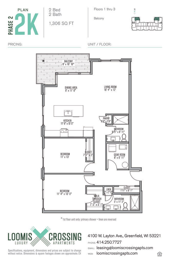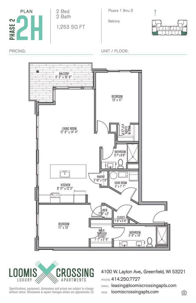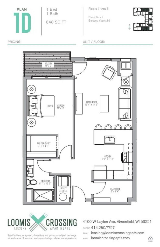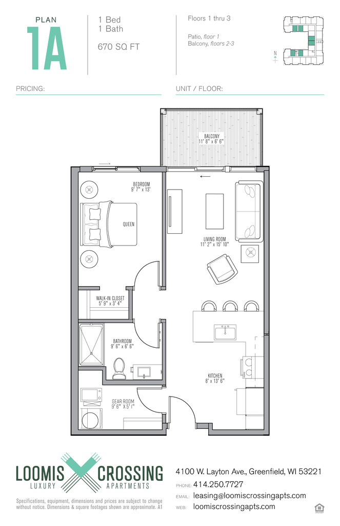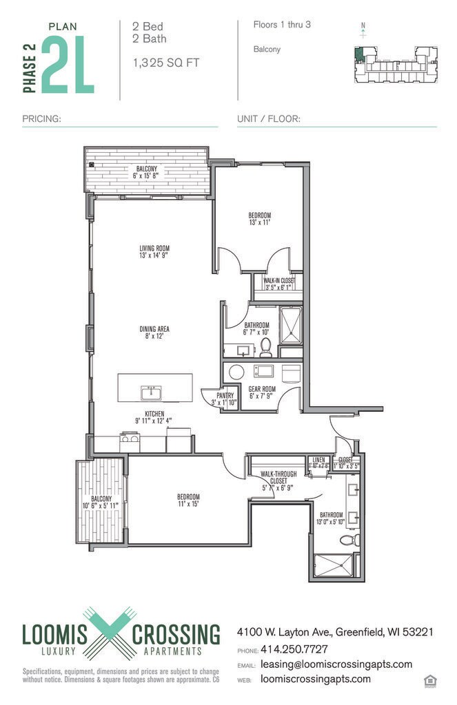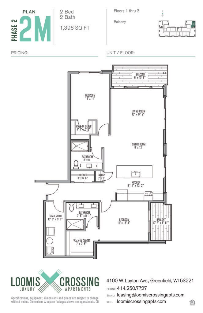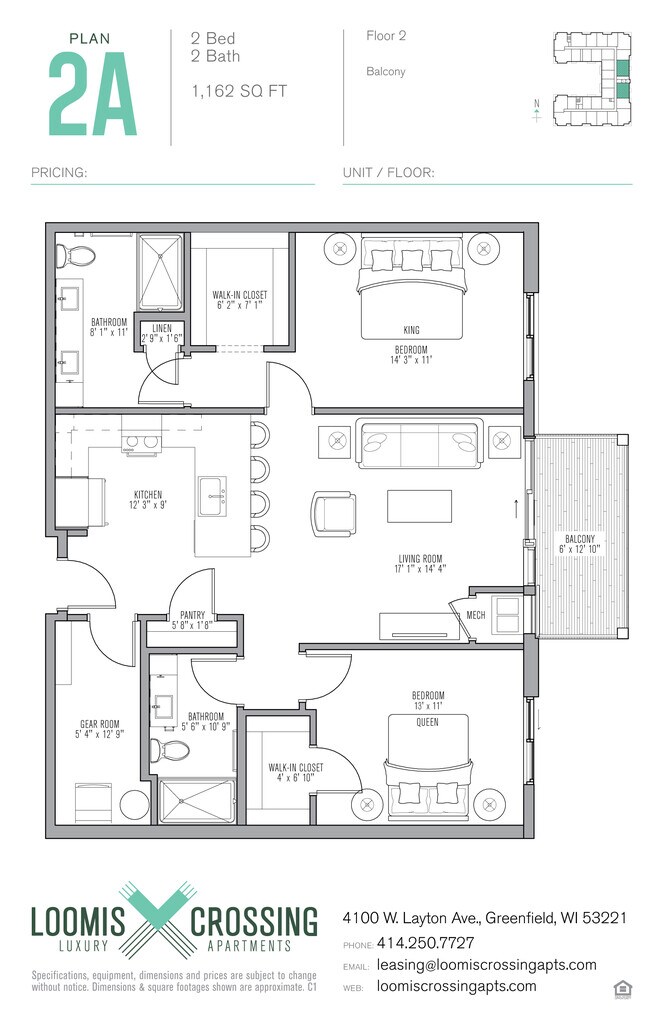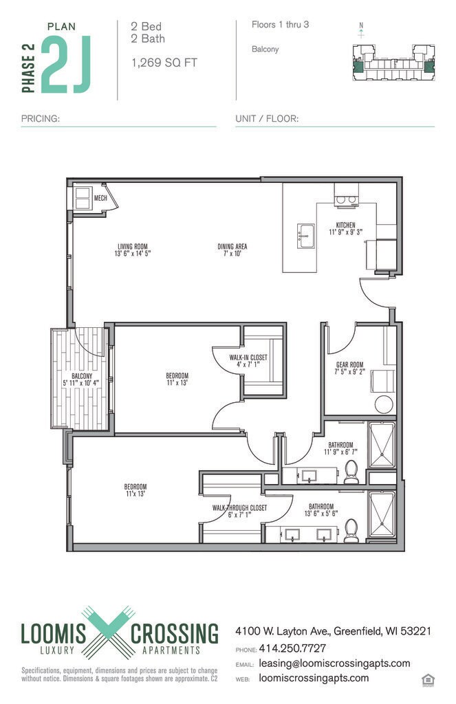 Loomis Crossing Apartments offers 1 to 2 Bedroom apartments starting from $1,455 and having 670–1,398 sq ft. Here is the current pricing and availability: