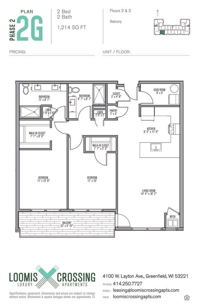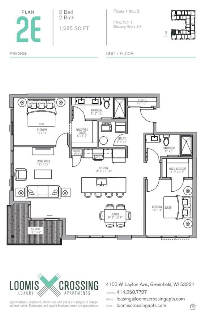 Loomis Crossing Apartments offers 2 Bedroom apartments starting from $2,250 and having 1,214–1,285 sq ft. Here is the current pricing and availability: