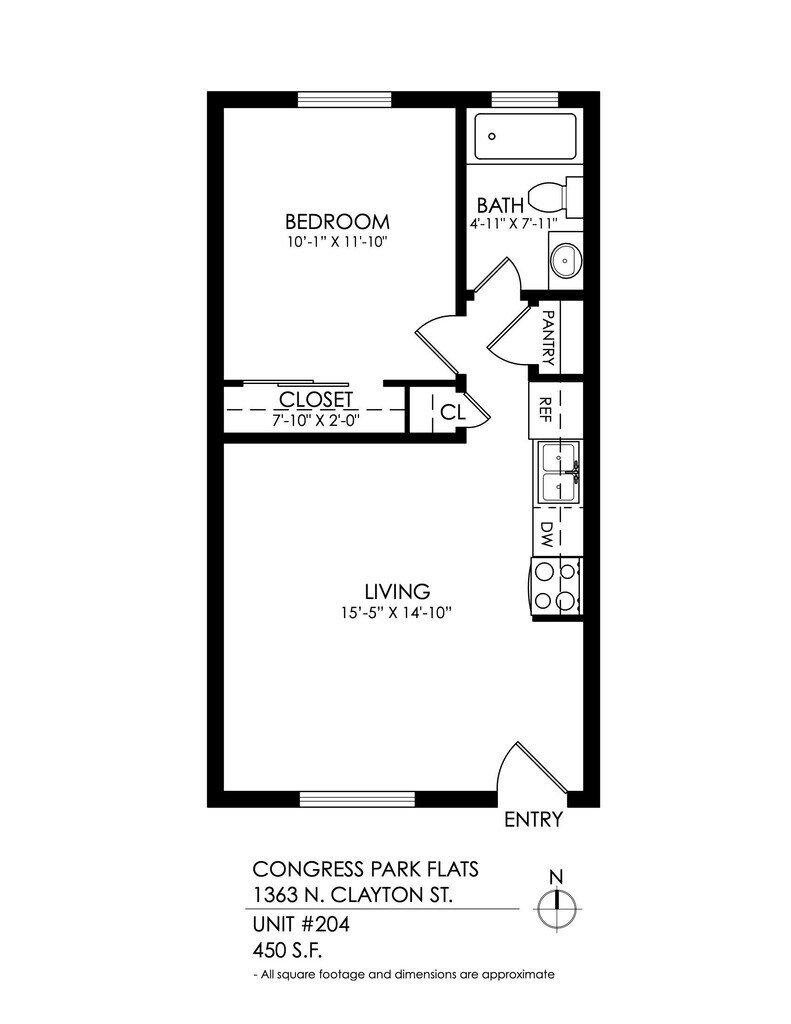 Welcome home to Congress Park Flats, where you are surrounded by classic Victorian-style homes on a beautiful residential street in Congress Park. This location is perfect for those that want to enjoy easy access to parks with Cheesman and City Park not far from your front door. Not only will you be able to enjoy plenty of green space, but residents are also surrounded by a plethora of dining and entertainment options, with Denver Biscuit Company, Voodoo Doughnuts, and the Fillmore - all within easy reach on Colfax! This community features one-bedroom units perfect for you and your furry friends to call home! Some units are complete with wood-style flooring and white cabinetry, and all residents will have air-conditioning in the unit! Residents can also utilize available storage and reserved parking** for added convenience. With a perfect location and plenty of nearby local favorites, you won't want to miss living at Congress Park Flats!