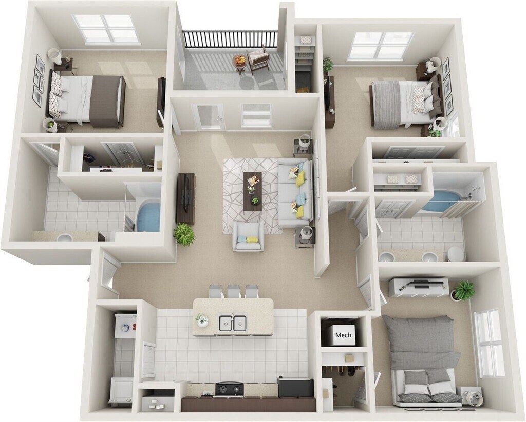 Loretto at Creekside offers 1 to 3 Bedroom apartments starting from $888 and having 650–1,250 sq ft. Here is the current pricing and availability: