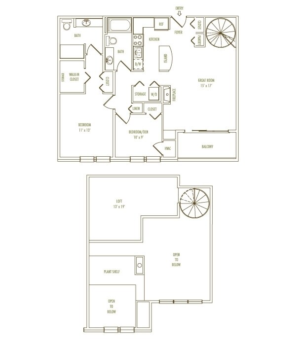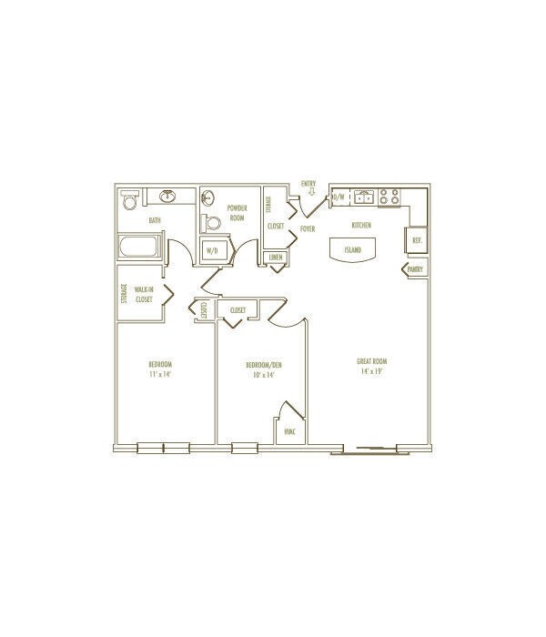 1 Bedroom, 1 Bath - Floorplan 1 Apartment Unit: 324Apartment Model: 1 Bedroom, 1 Bath$1,6461 Bedroom, 1 Bath, 1037 sq ftAvailable Now1 Bed w/ Den, 1 Bath