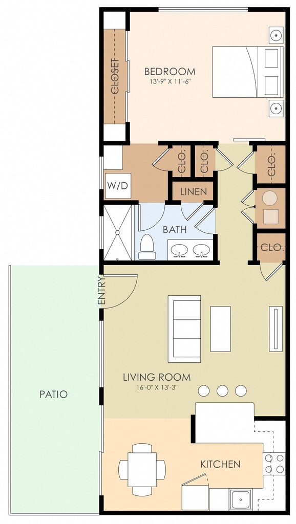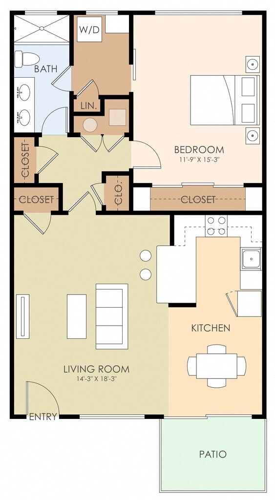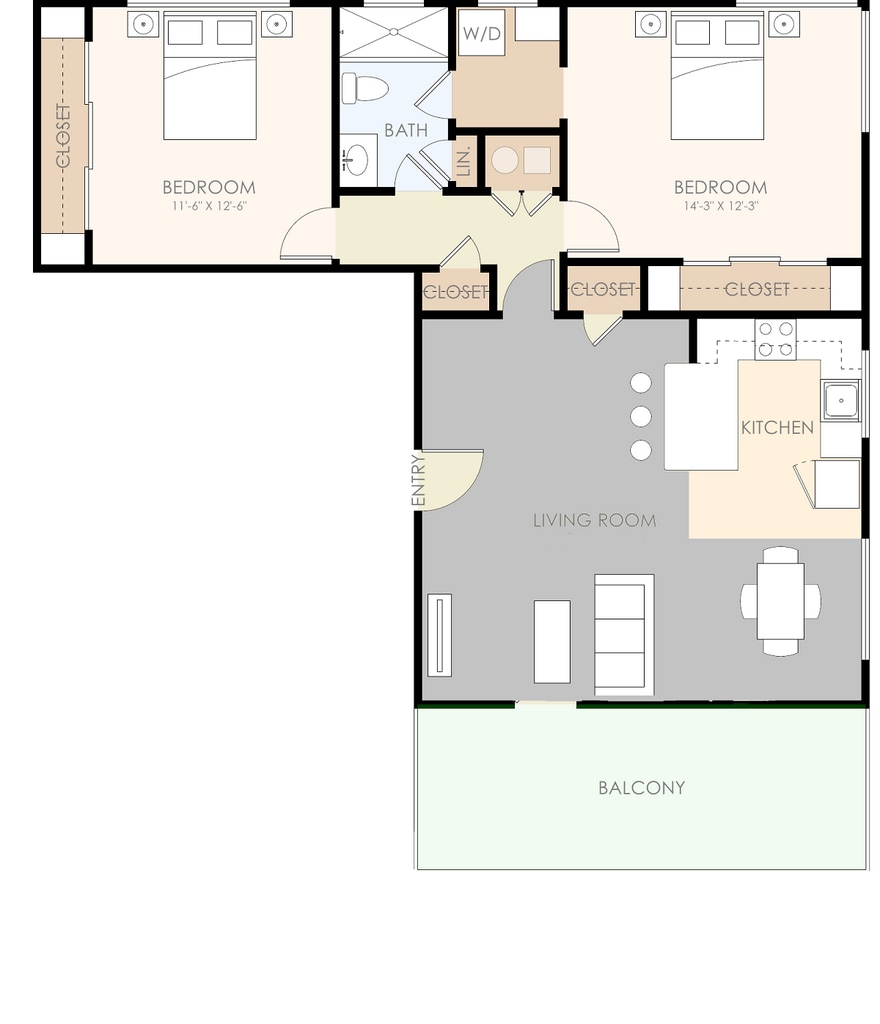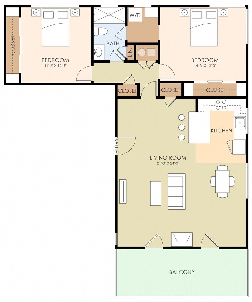 One Bedroom One Bath - Floorplan 3 2 Bedrooms