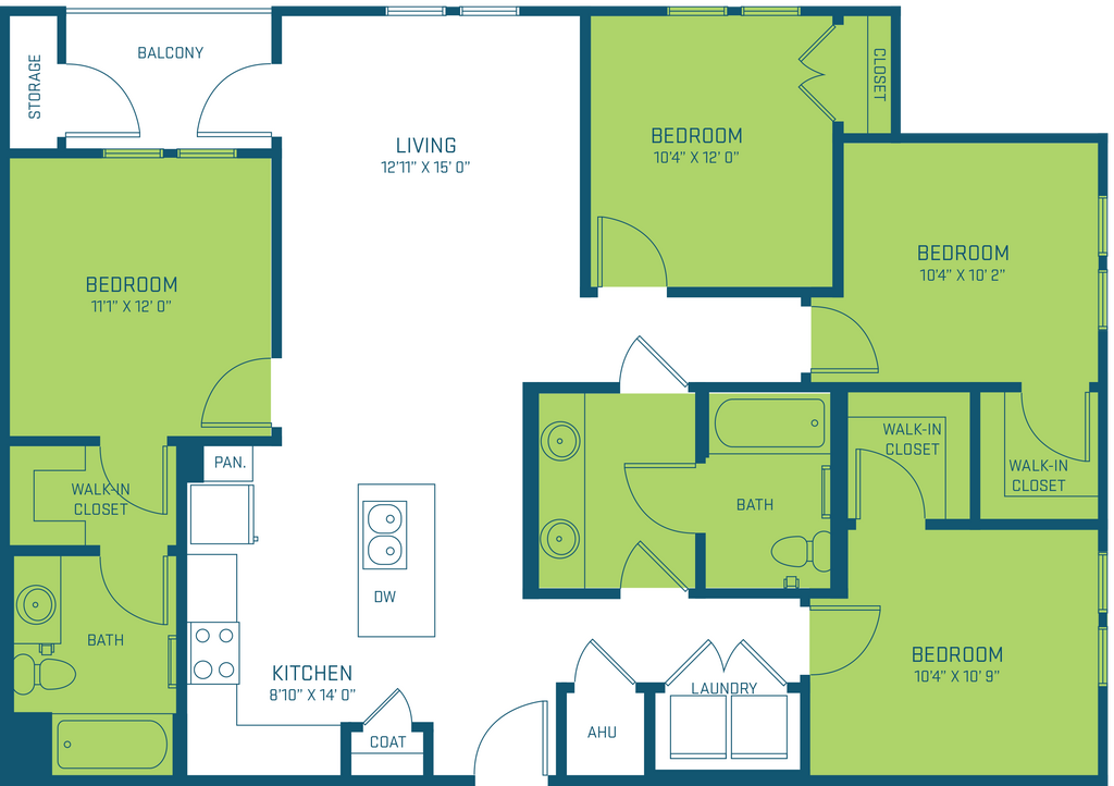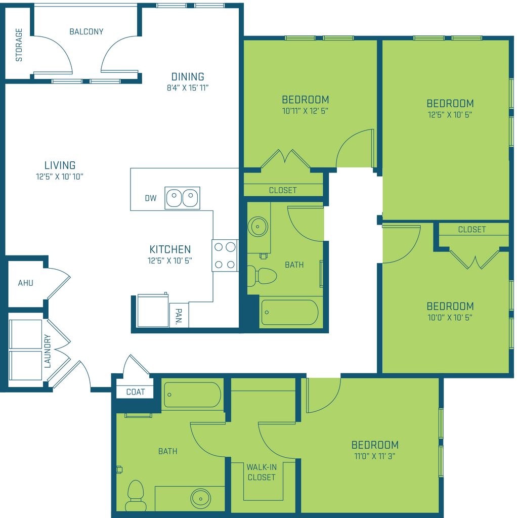 Apartment Model: D2From $1,3904 Bedroom, 2 Bath, 1378 sq ftAvailable Now![]()
