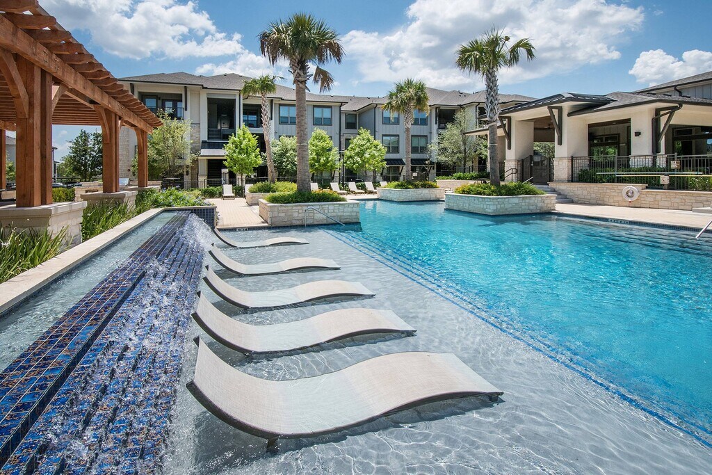 Los Robles apartments in San Antonio, TX offer 1- and 2-bedroom apartments in the Stone Oak neighborhood of Bexar County, located within the North East Independent School District. These pet-friendly apartments welcome up to two pets per home and feature a resort-style pool with in-pool cocktail tables, outdoor lounge areas, a fitness center, garage and carport parking, private storage, and electric car charging stations. Inside, you'll find hardwood-style flooring, in-home washer and dryer, granite countertops, walk-in closets with custom shelving, and private patios or balconies. The community is conveniently situated near US Highway 281 and just 20 miles from the San Antonio River Walk.