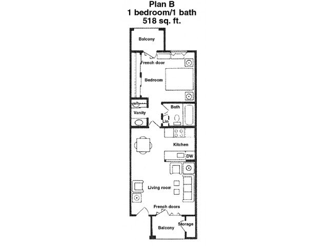 Apartment Model: B - 1 BR MdFrom $1,2201 Bedroom, 1 Bath, 518 sq ftAvailable Now![]()