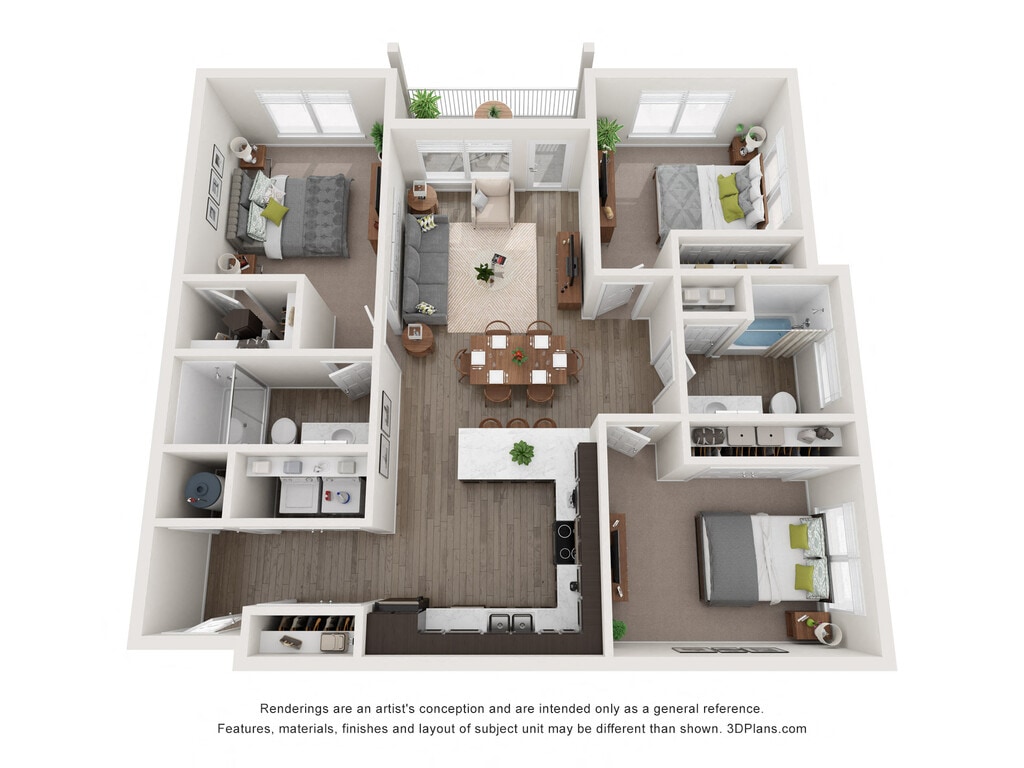 Apartment Model: Three BedroomFrom $1,6603 Bedroom, 2 Bath, 1230 sq ftAvailable Now![]()