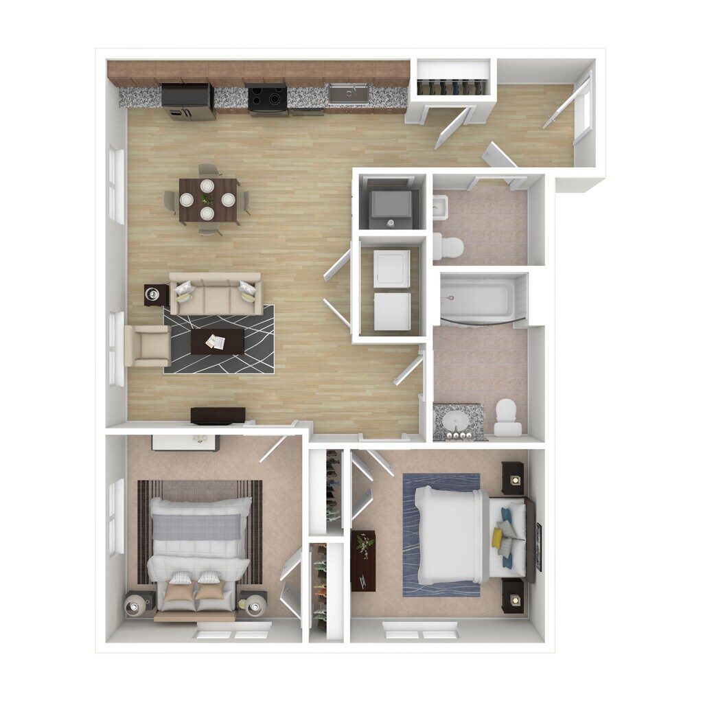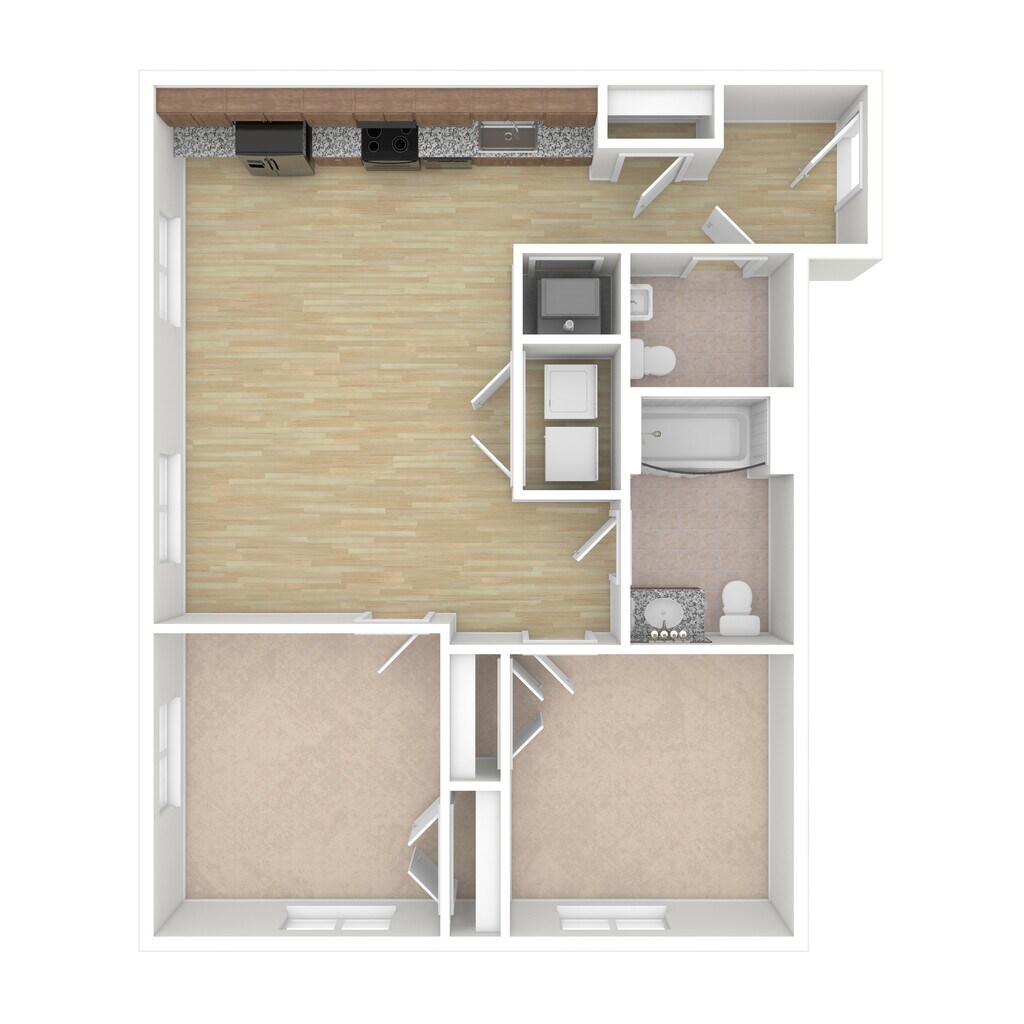One Bedroom - B - Floorplan 3 2 Bedrooms