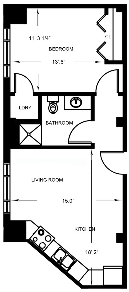 1 Bed 1 Bath - Floorplan 2 ![]()