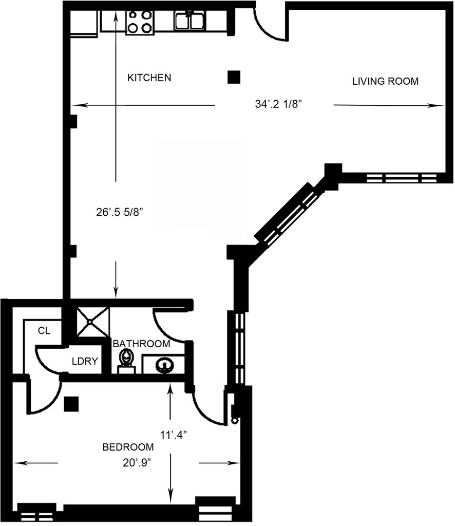 1 Bed 1 Bath - Floorplan 1 ![]()