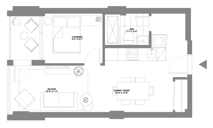 Apartment Model: Comète II$1,8751 Bedroom, 1 Bath, 371 sq ftAvailable Now![]()