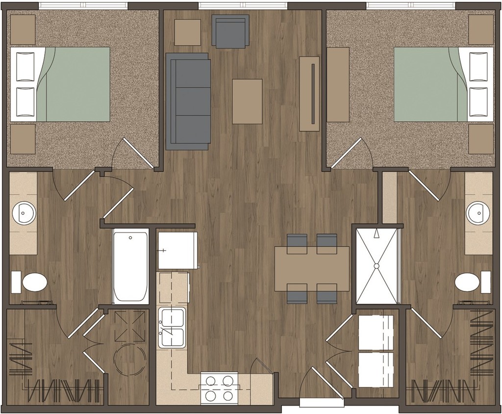 2 Beds, 2 Baths, 917 sq ftModel Gallery
