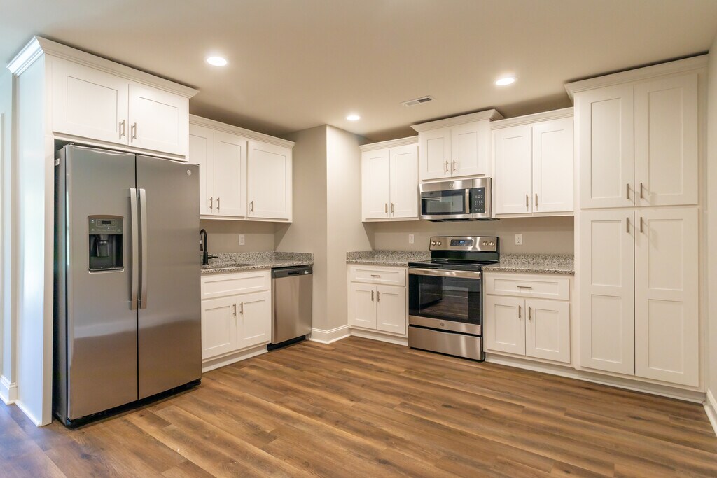 This townhome features an open living area with LVP flooring throughout, custom cabinets with granite and stainless steel appliances, three spacious bedrooms and two full baths, one car rear entry garage, covered back porch and sodded yard. This townhome comes with Spectrum Internet, Spectrum Cable and Lawn Care all included in the rental rate.