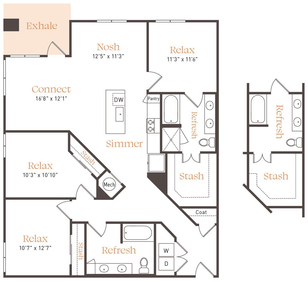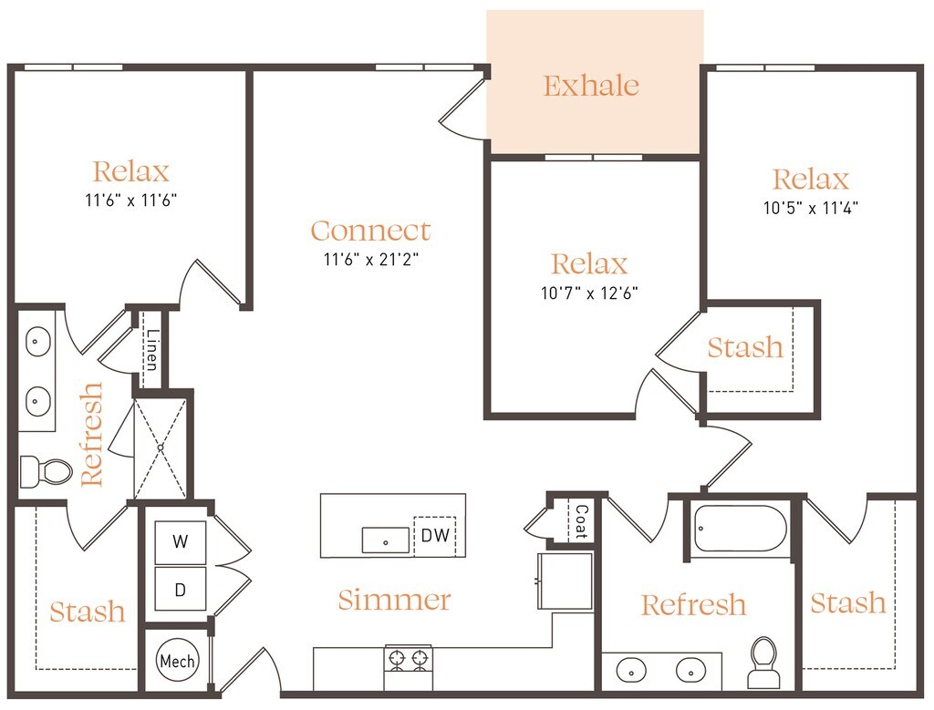1 Bed, 1 Bath, 896 sq ftAvailable NowModel Gallery