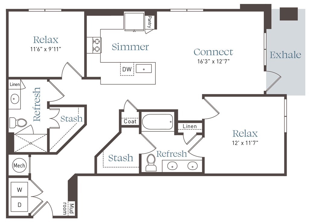 1 Bed, 1 Bath, 744 sq ftAvailable NowModel Gallery
