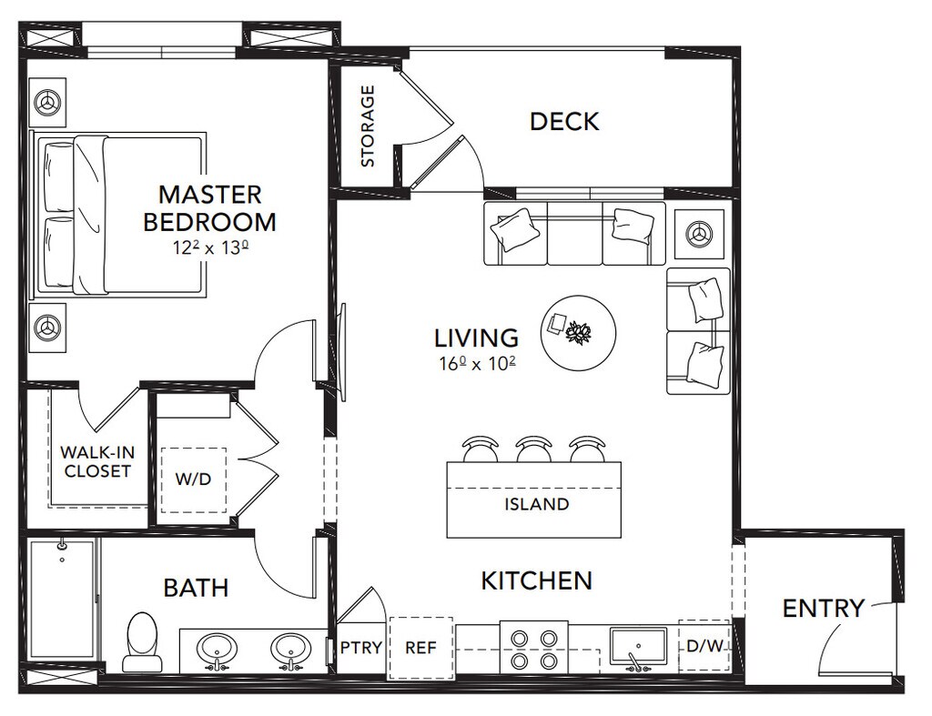 1 Bed, 1 Bath, 703 sq ftModel Gallery