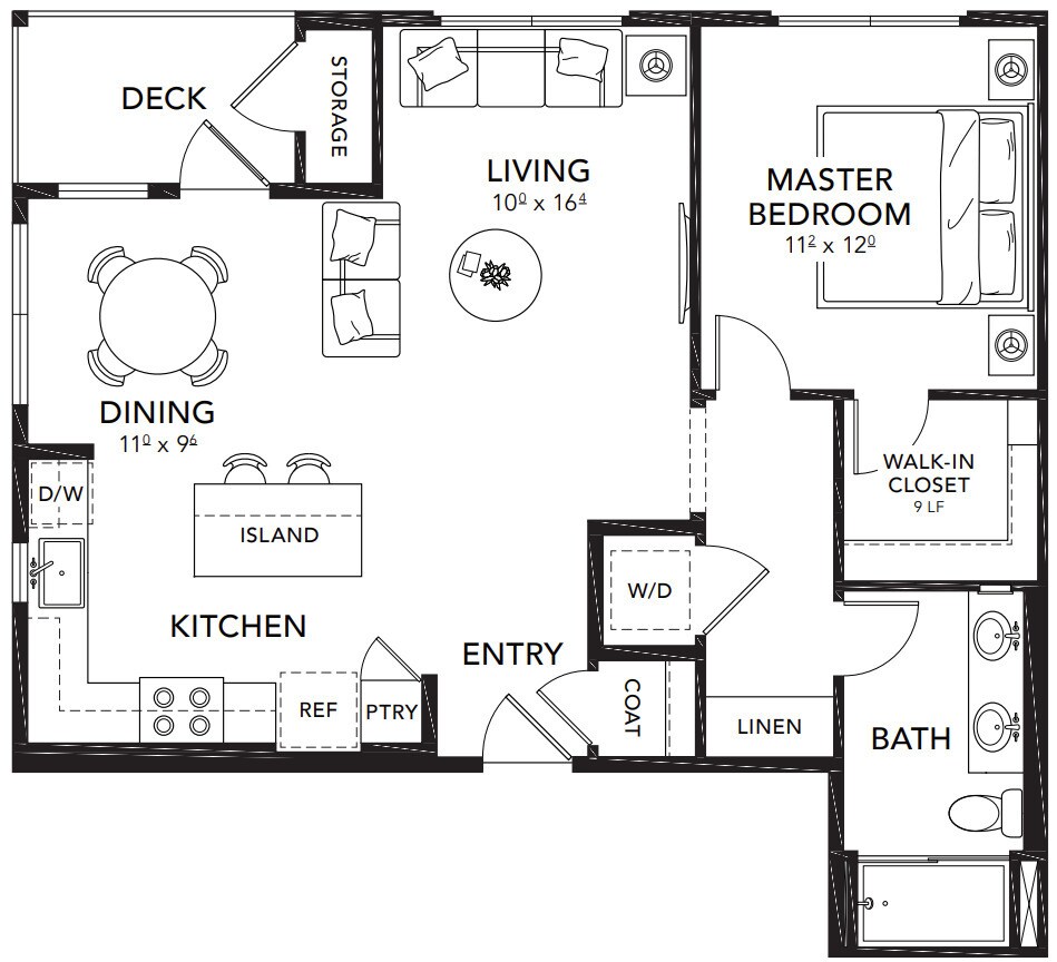 Apartment Model: UNIT A1Call For Rates1 Bedroom, 1 Bath, 691 sq ftUnavailable![]()