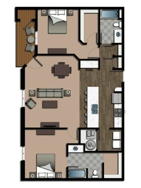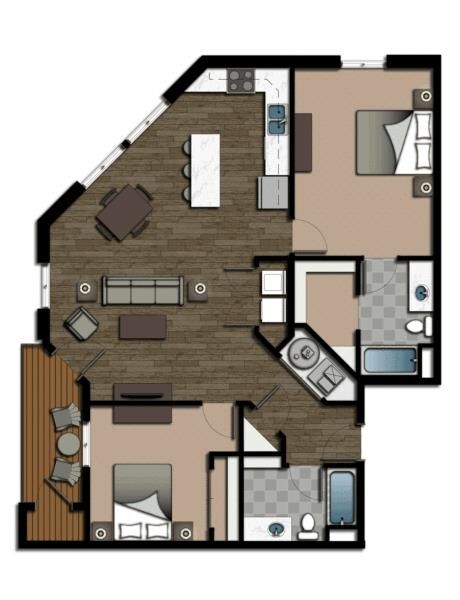 2 Beds, 2 Baths, 1001 sq ftModel Gallery