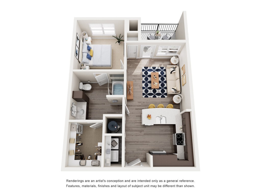 Apartment Model: A150From $1,1991 Bedroom, 1 Bath, 716 sq ftAvailable NowFloor plans are artist's rendering. All dimensions are approximate. Actual product and specifications may vary in dimension or detail. Not all features are available in every rental home. Prices and availability are subject to change. Base rent is based on monthly frequency. Additional fees may apply, such as but not limited to package delivery, trash, water, amenities, etc. Deposits vary. Please see a representative for details.