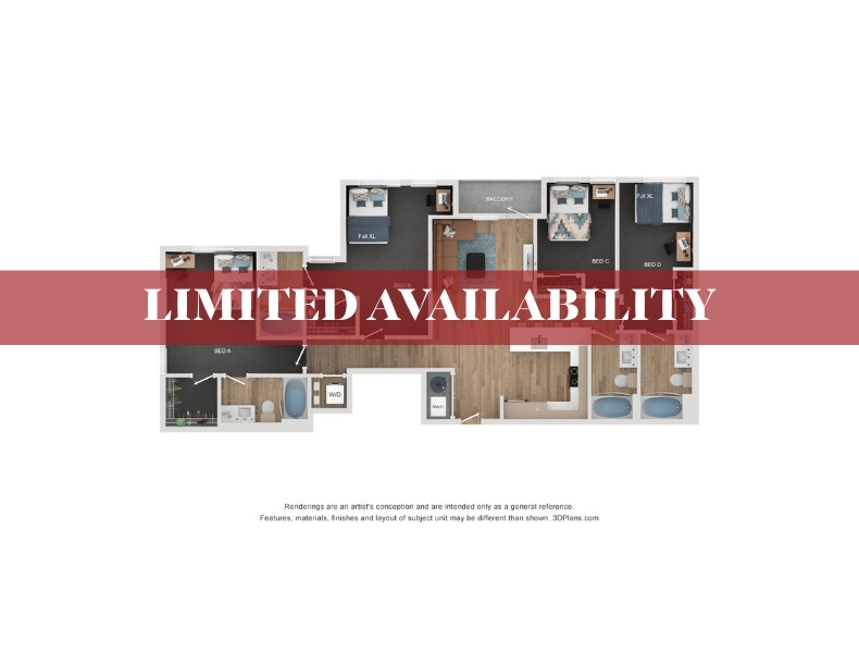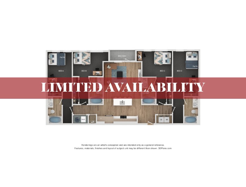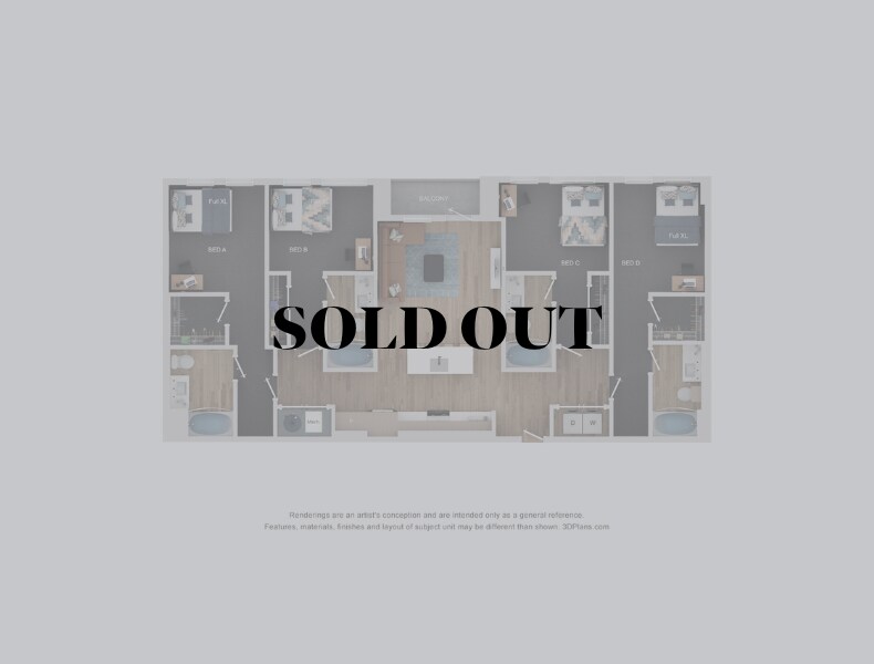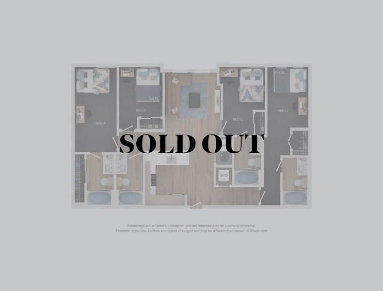 Apartment Model: 5BR/5BA - E15 Bedroom, 5 Bath, 2820 sq ftAvailable NowFloor plans are artist's rendering. All dimensions are approximate. Actual product and specifications may vary in dimension or detail. Not all features are available in every rental home. Please see a representative for details.