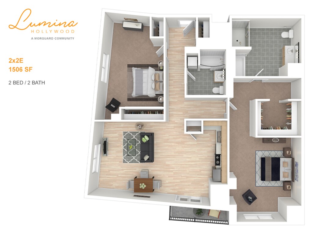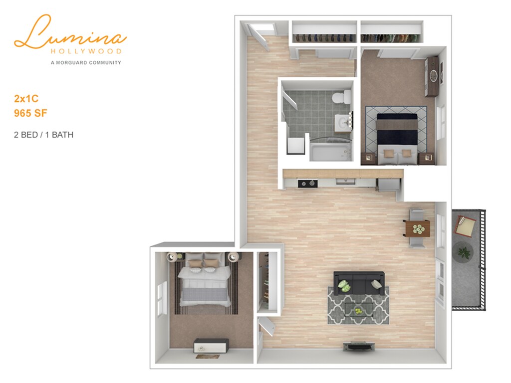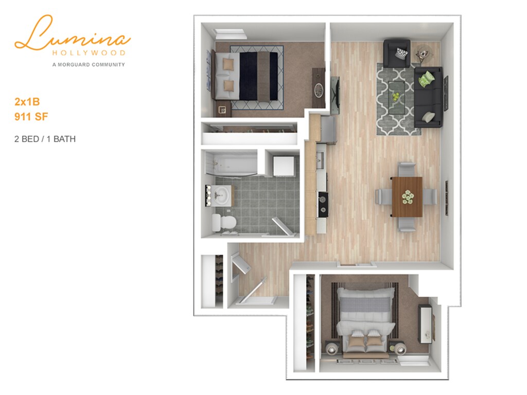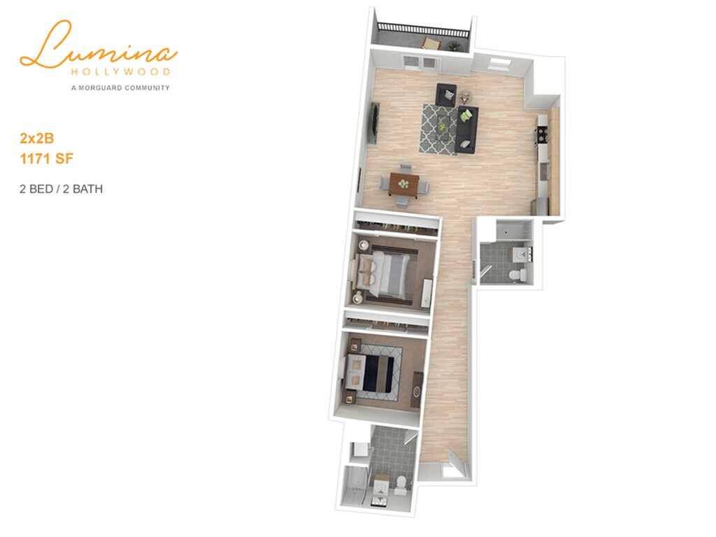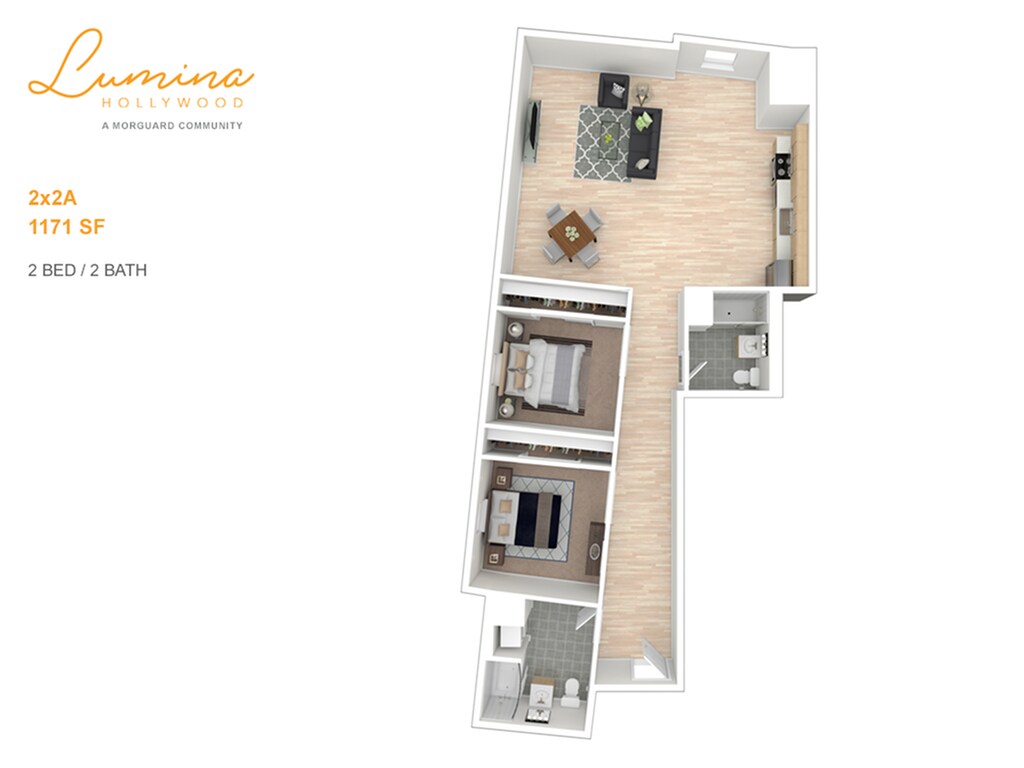 Lumina Hollywood offers Studio to 2 Bedroom apartments starting from $2,521 and having 576–1,506 sq ft. Here is the current pricing and availability: