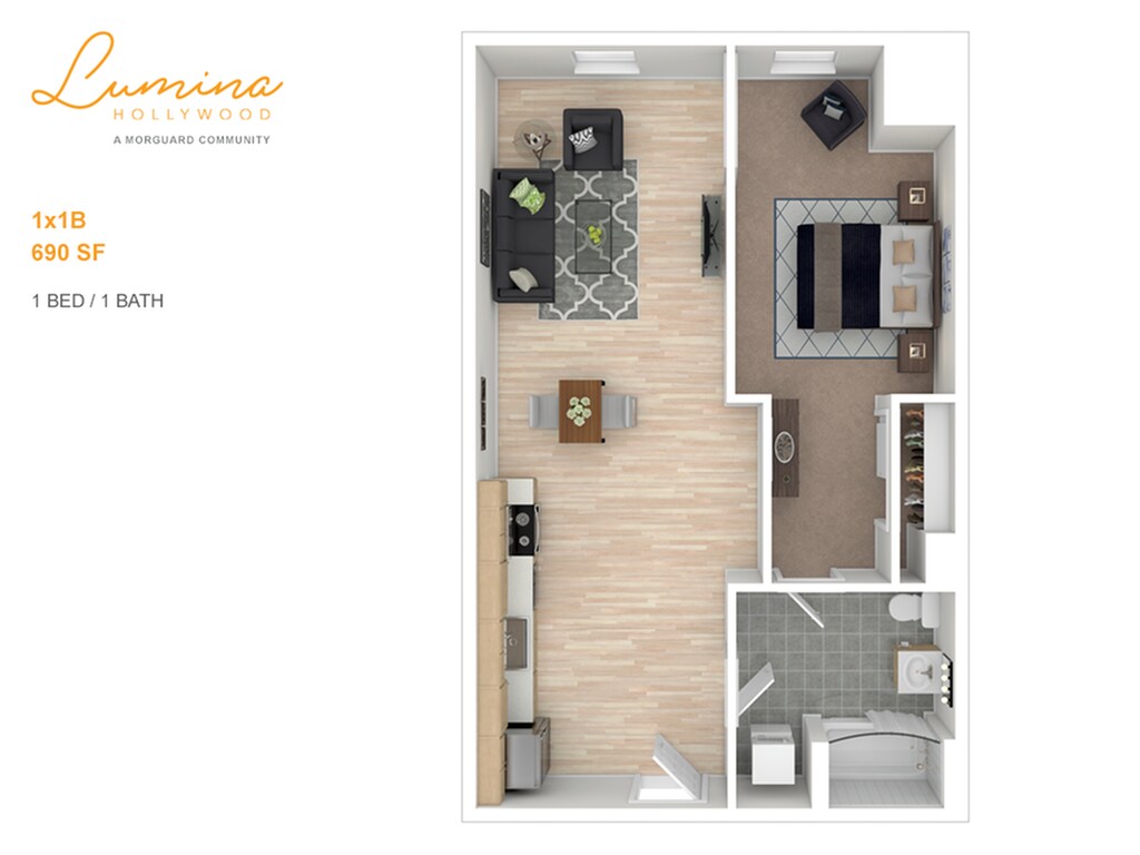 1 Bed, 1 Bath, 690 sq ftAvailable NowCheapest 1 BedroomThis is the cheapest 1 Bedroom at this PropertyModel Gallery