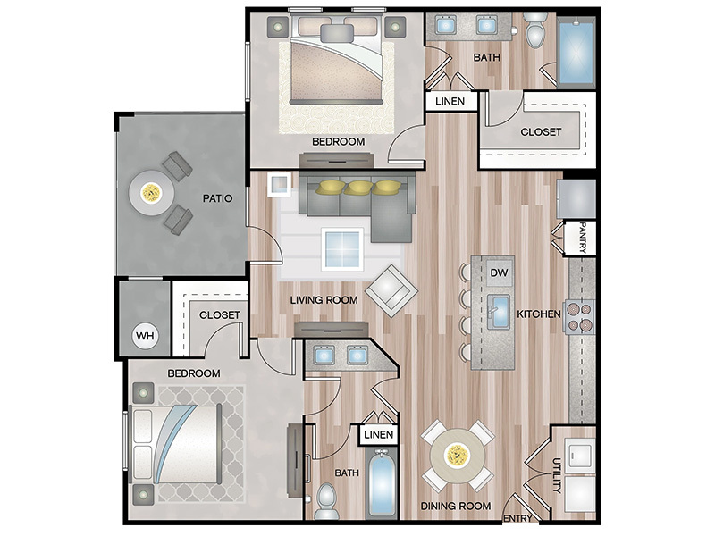 2 Beds, 2 Baths, 1075 sq ftAvailable NowModel Gallery