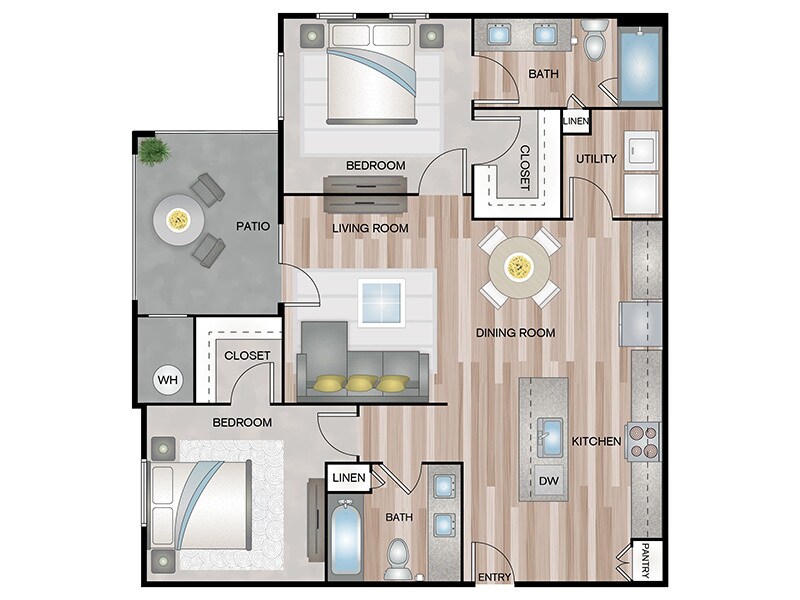 Apartment Model: 2x2-1075A$1,5592 Bedroom, 2 Bath, 1075 sq ftAvailable Now![]()