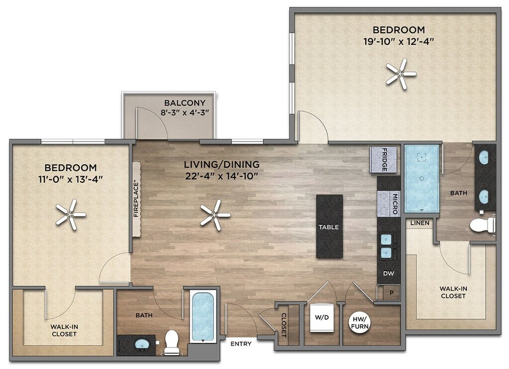 1 Bed, 1 Bath, 698-743 sq ftAvailable NowModel Gallery