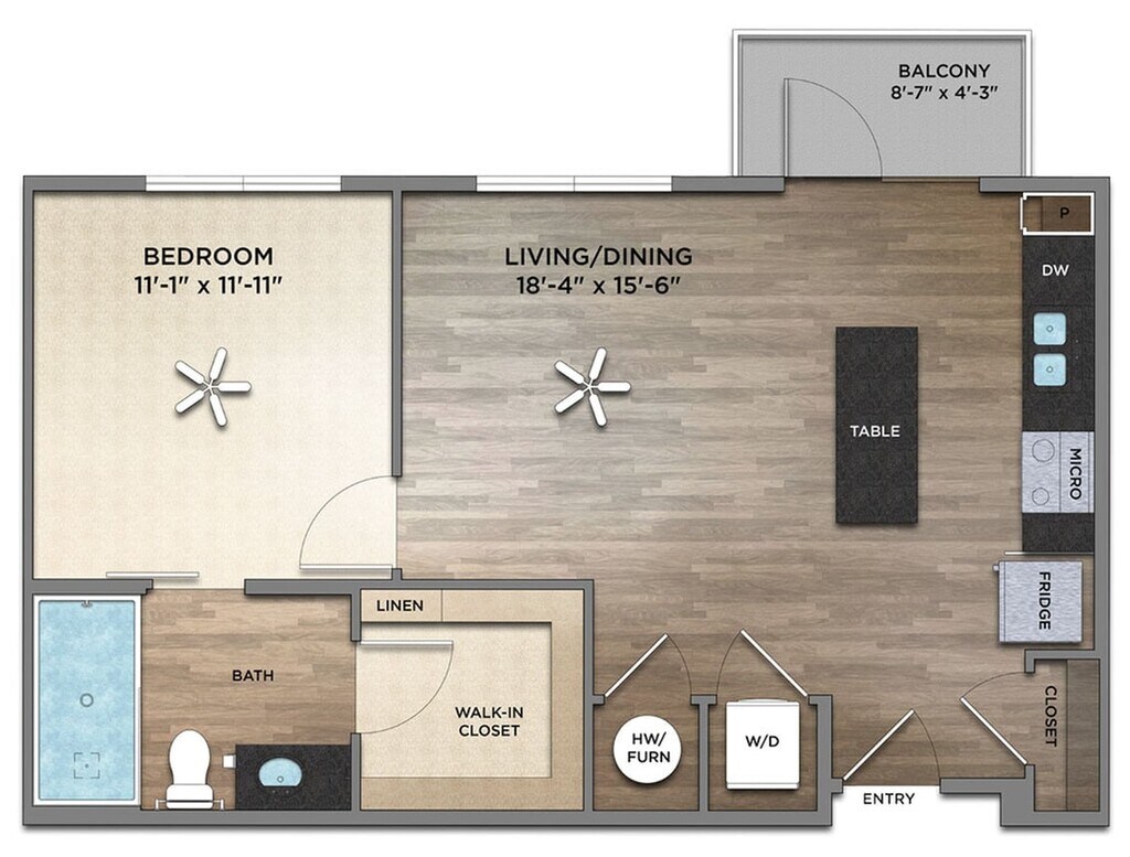 1 Bed, 1 Bath, 797 sq ftAvailable Nov 18Largest 1 BedroomThis is the largest 1 Bedroom at this PropertyModel Gallery