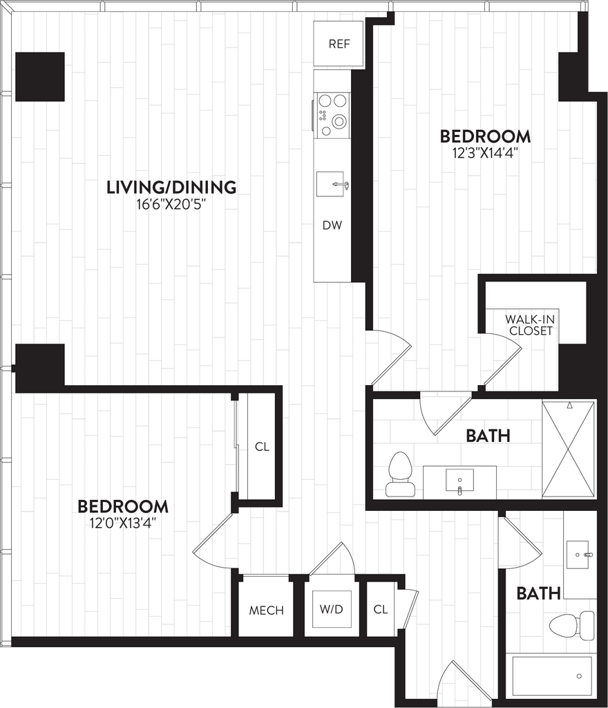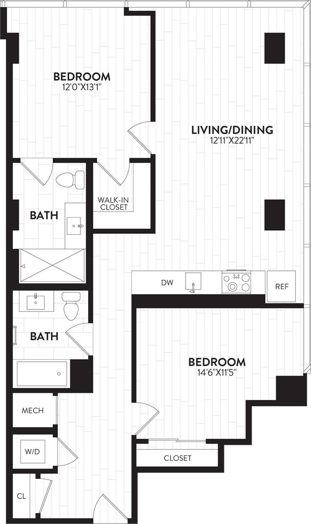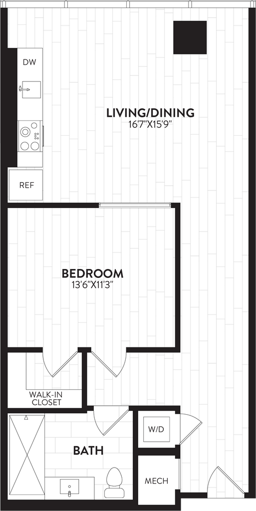 Studio-0D Luminary - Floorplan 1 1 Bedroom