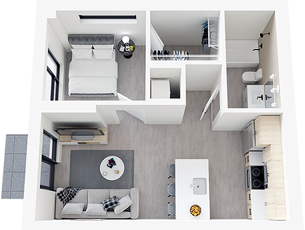 Apollo - Floorplan 1 Apartment Unit: 401Apartment Model: Apollo$1,4501 Bedroom, 1 Bath, 606 sq ftAvailable NowSuria