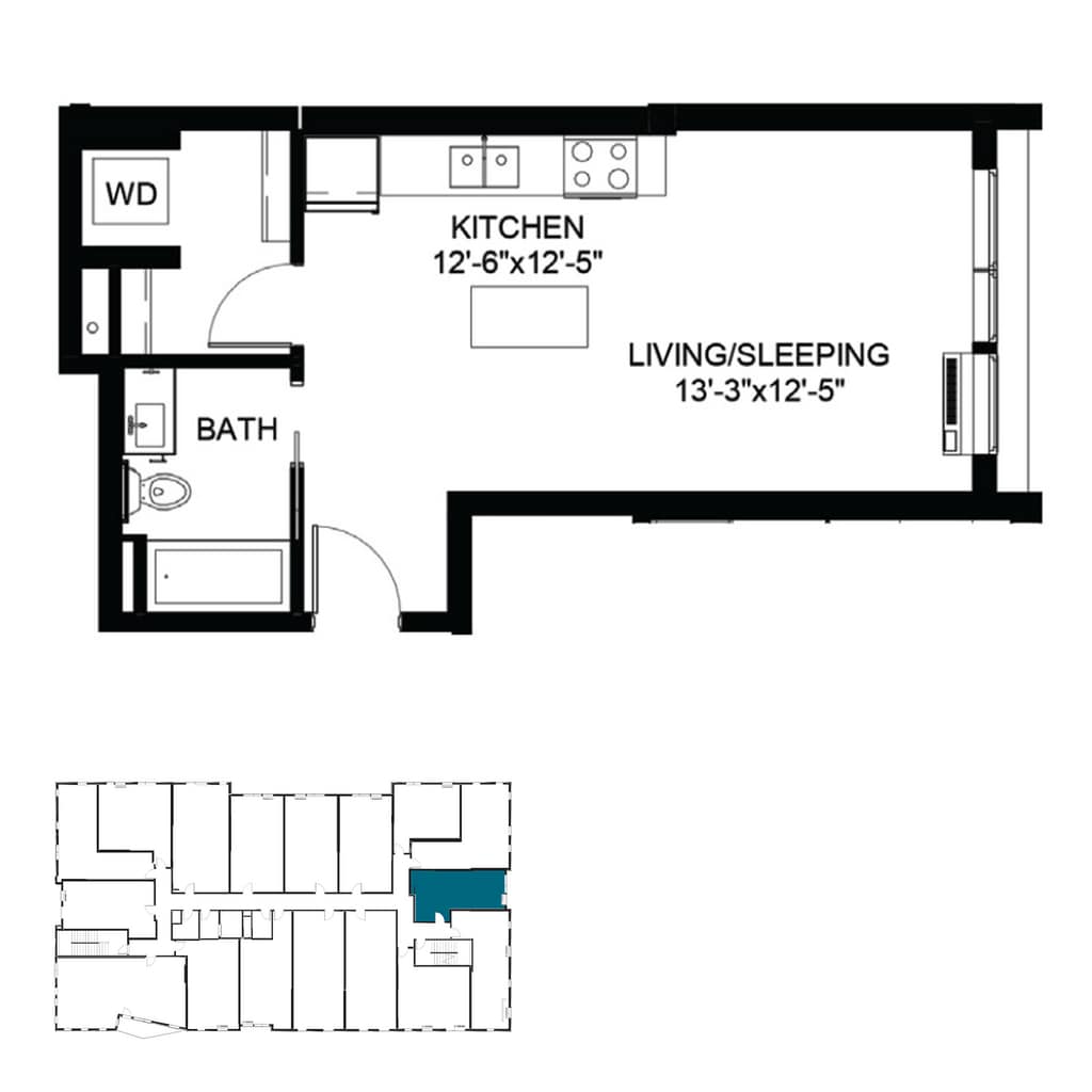 Aries V2 - Floorplan 1 Apartment Unit: 201Apartment Model: Aries V2$1,2401 Bedroom, 1 Bath, 540 sq ftAvailable Now![]()