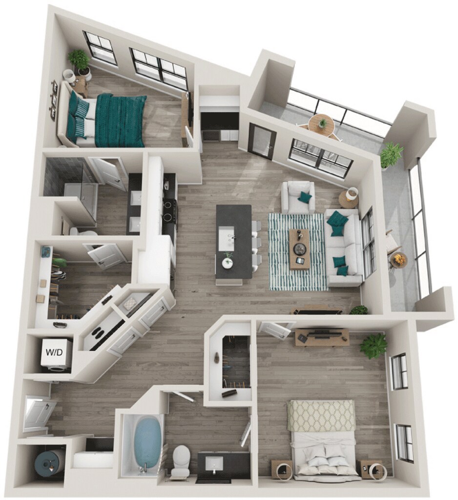 1 Bed, 1 Bath, 744 sq ftModel Gallery
