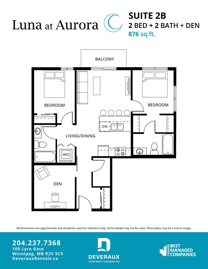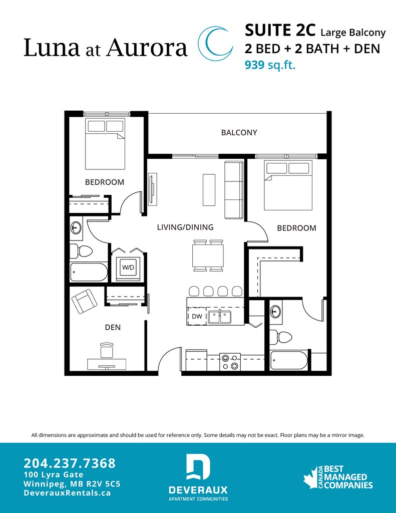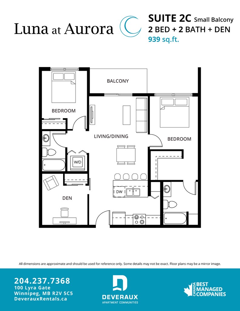 Apartment Model: 2 Bedroom, 2 Bathroom + Den2 Bedroom, 2 Bath, 876-939 sq ftAvailable Now![]()