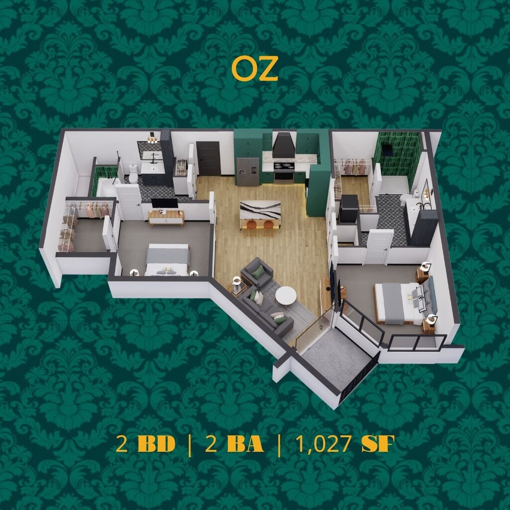 Apartment Model: Oz2 Bedroom, 2 Bath, 1027 sq ftUnavailable![]()