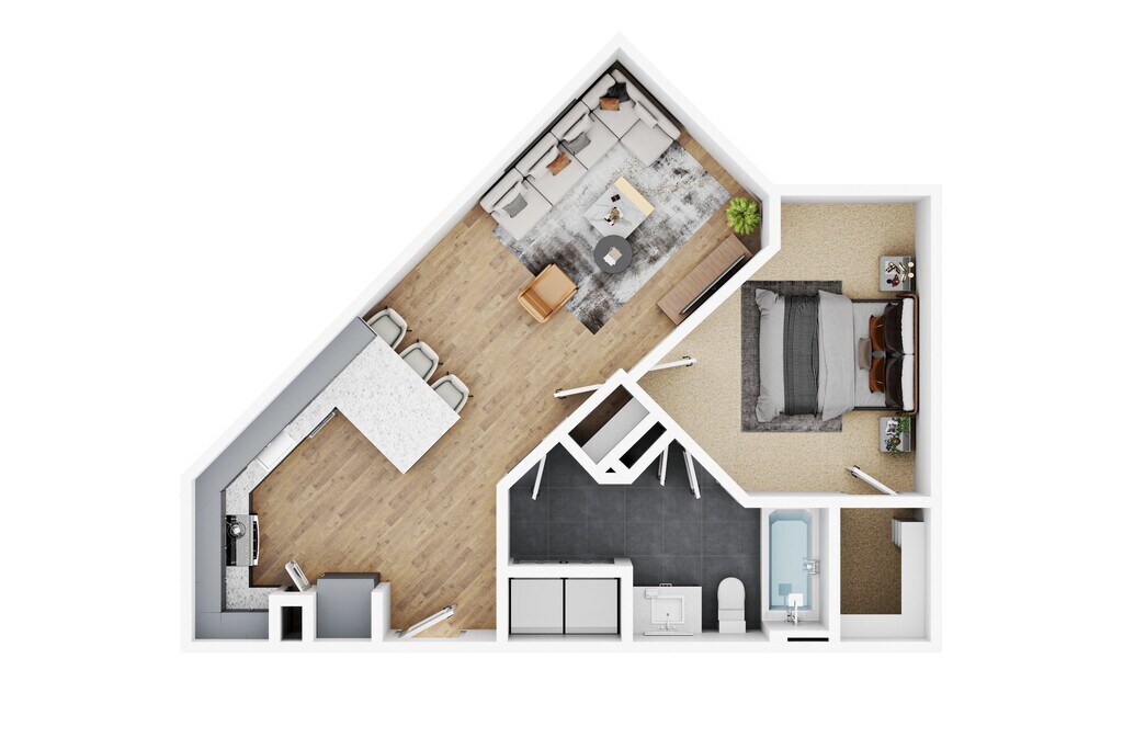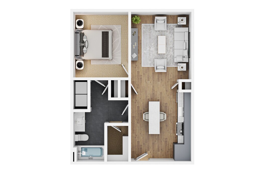 Studio, 1 Bath, 596 sq ftAvailable NowLargest StudioThis is the largest Studio at this PropertyModel Gallery