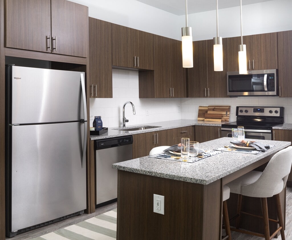 Studio to 2 Bedroom Apartments at Lux on Main currently range from $1,372 to $2,152