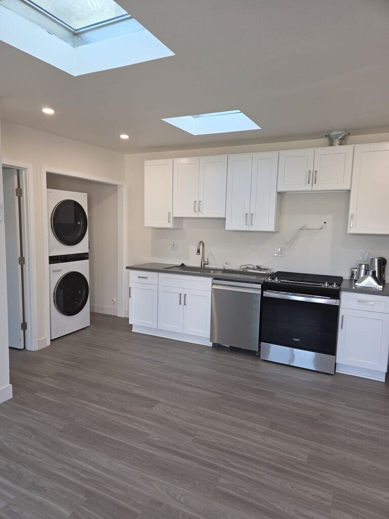 - kitchen stainless steel appliances including: refrigerator - self-cleaning gas range oven - dishwash