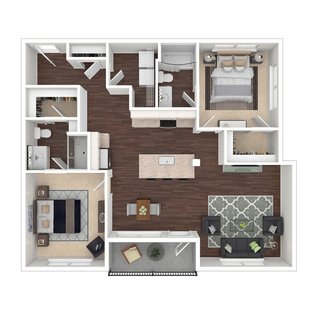 2 Beds, 3 Baths, 1387 sq ftLargest 2 BedroomThis is the largest 2 Bedroom at this PropertyModel Gallery