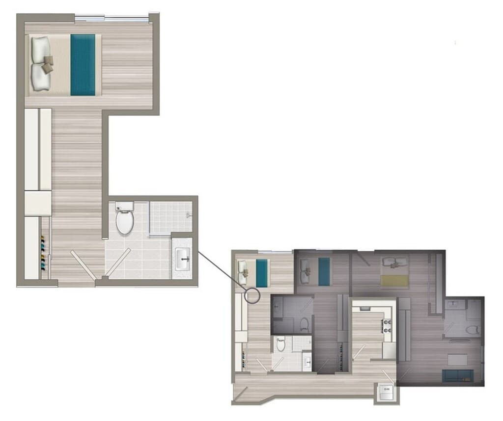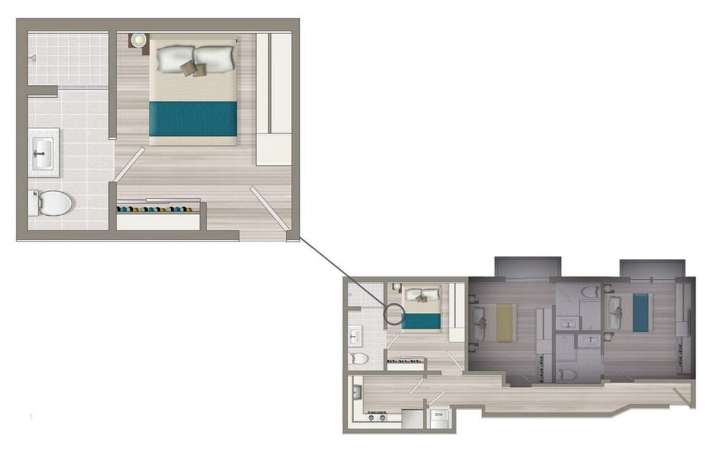 1x1JR-395 - Floorplan 1 Apartment Unit: 205Apartment Model: 1x1JR-395$2,8001 Bedroom, 1 Bath, 395 sq ftAvailable Now2 Bedrooms