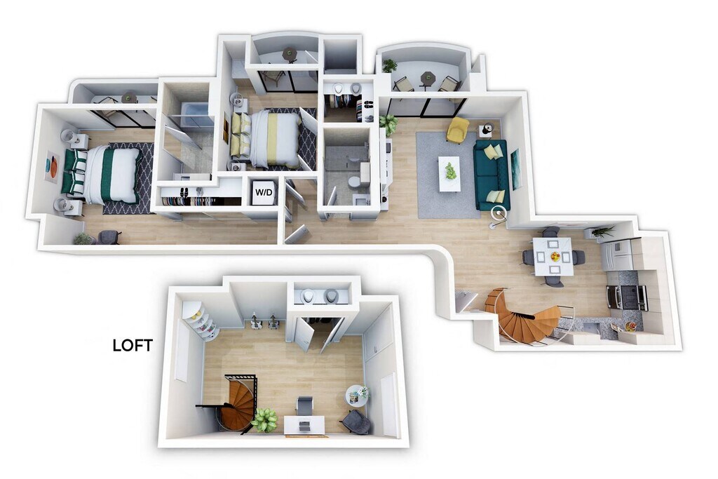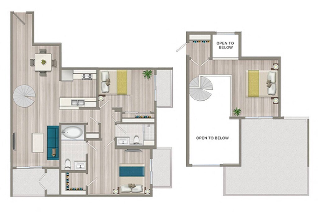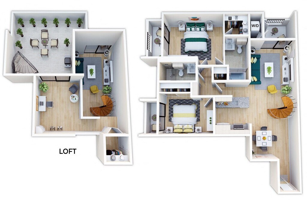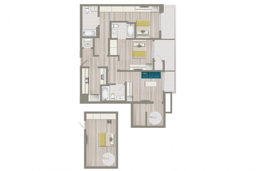 Furnished Co-Living One Bedroom Loft - Floorplan 2 2 Bedrooms