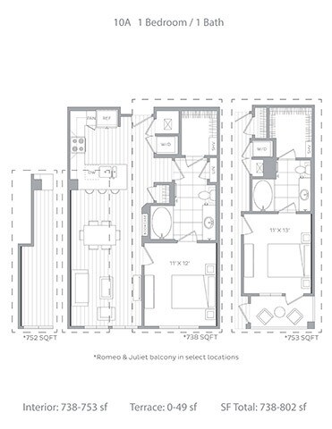 1 Bed, 1 Bath, 738-753 sq ftTotal Monthly PriceAvailable NowModel Gallery